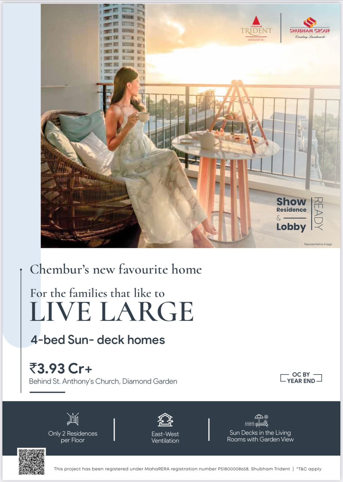 Shubham Trident is a Residential Project Developed by the Shubham Groups. It is located at Chembur. Chembur is well-connected to other parts of Mumbai and the metropolitan area through road and rail networks. The Eastern Express Highway and the Eastern Freeway provide easy access to South Mumbai and other parts of the city. 1.3 - 1.5 km distance to Chembur Railway Station and Monorail Station. Connectivity to major commercial hubs like BKC, Powai, Vashi and lower Parel. Close proximity to the social infrastructure. It is a 13 storey tower offering 2 and 3 BHK Ac homes. Cross Air Ventilation. Modular Kitchen and Premium Vitrified Flooring. Select 4 bed AC homes with sun-deck. Car parking available for each residence. Double-height grand entrance lobby and Finest lifestyle amenities for leisure & health.